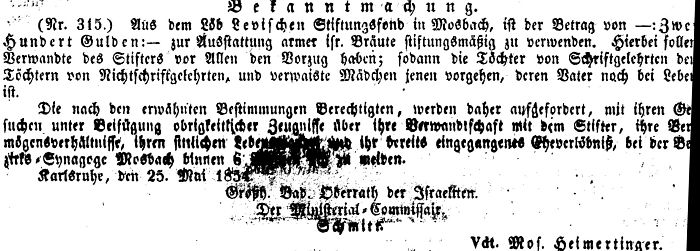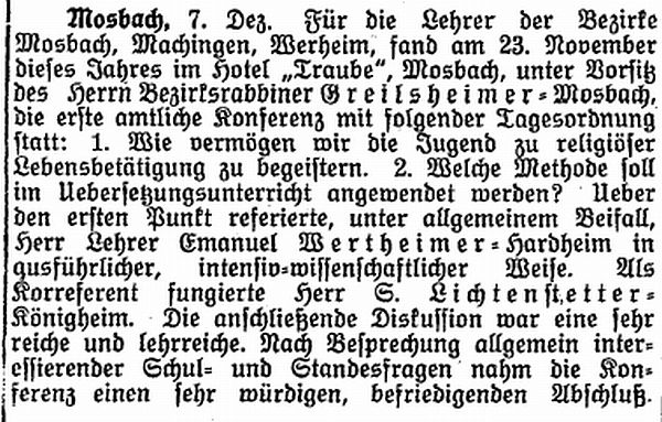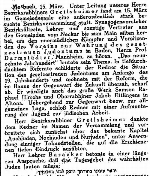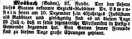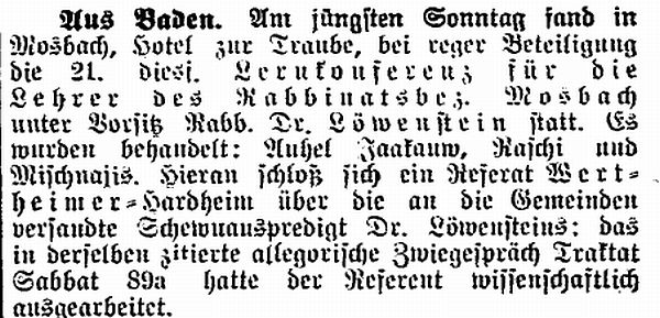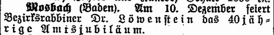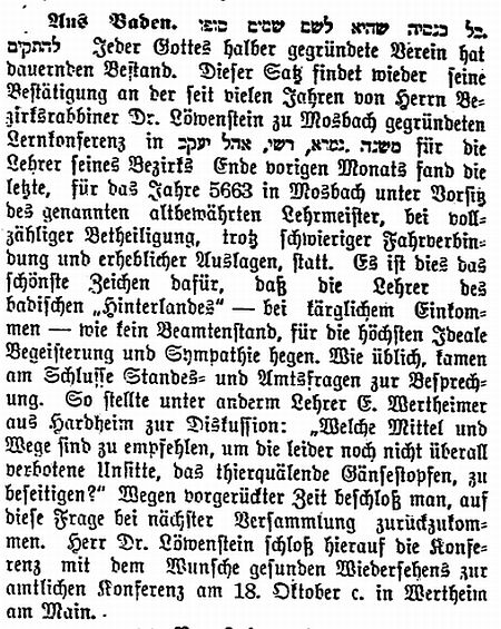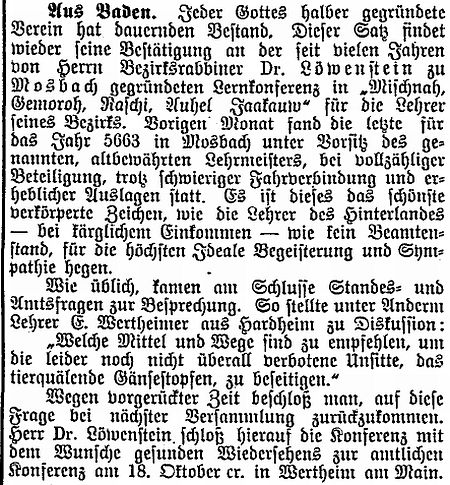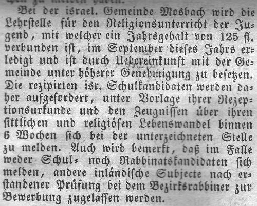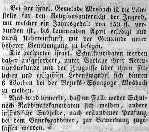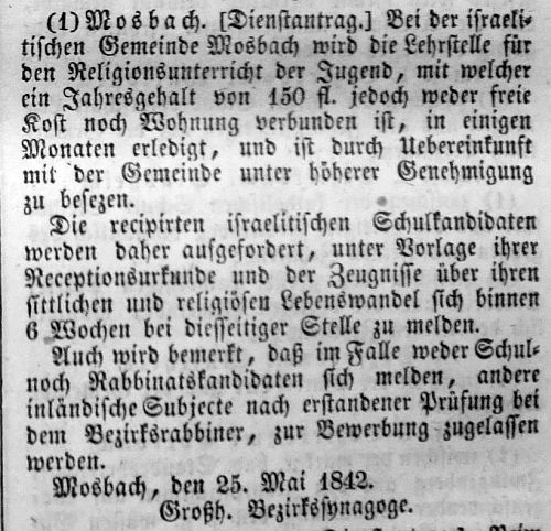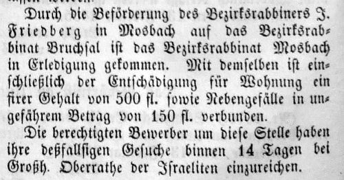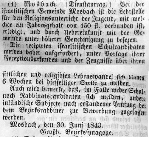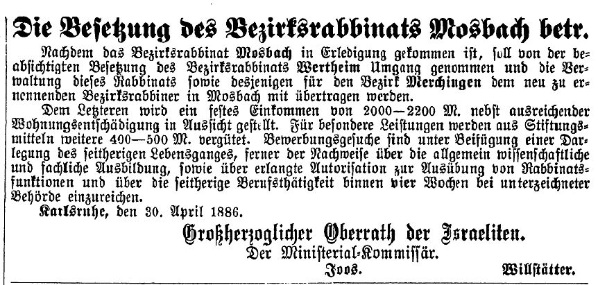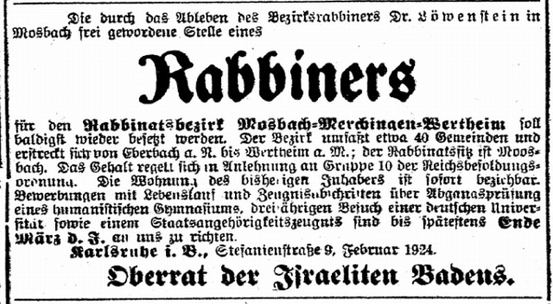Bezirksrabbiner von Mosbach und letzterer Bezirk erhielt Herrn Kandidat