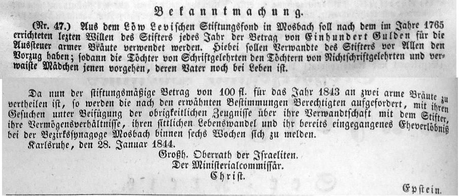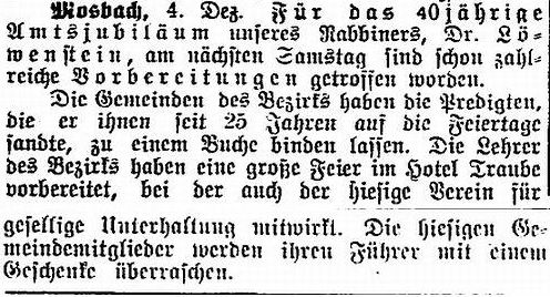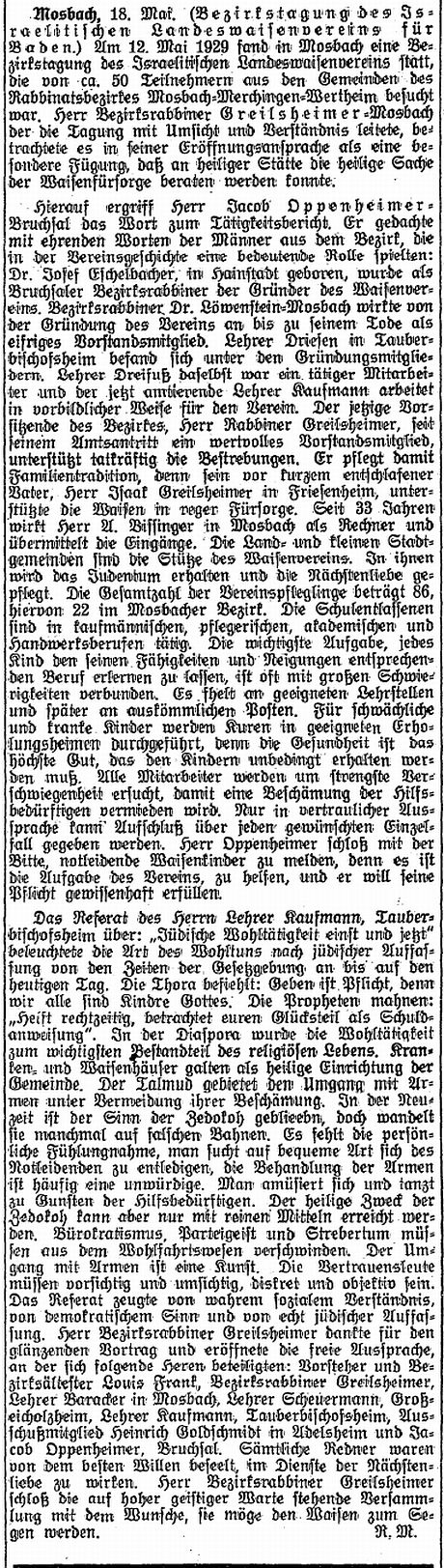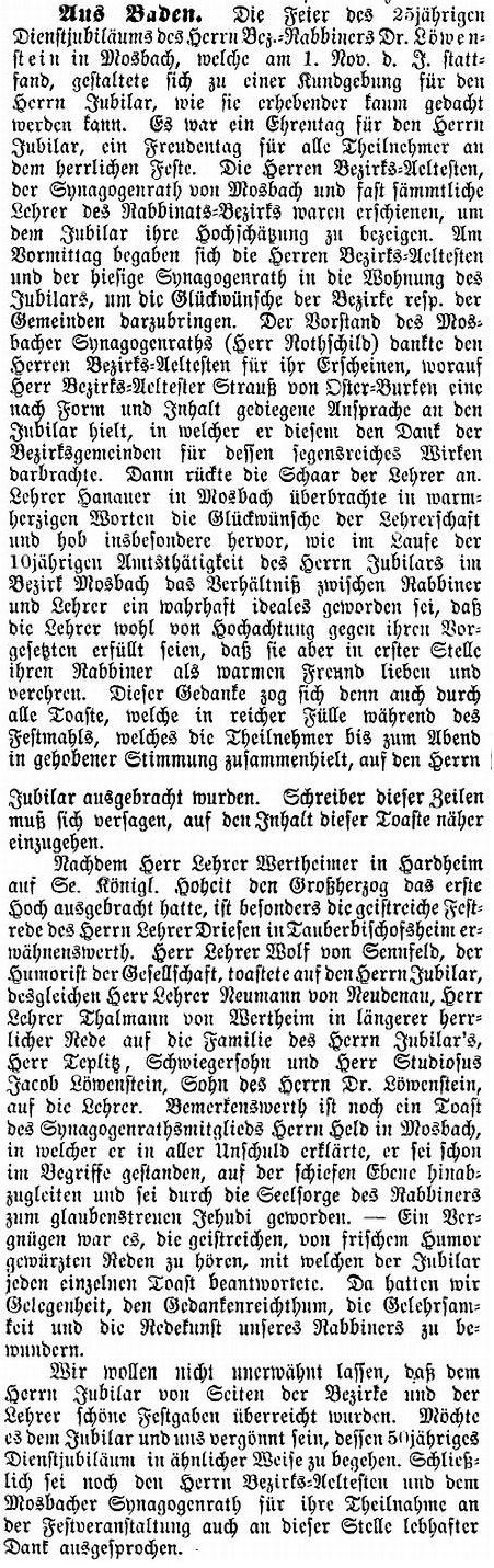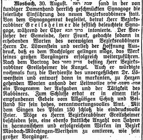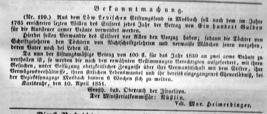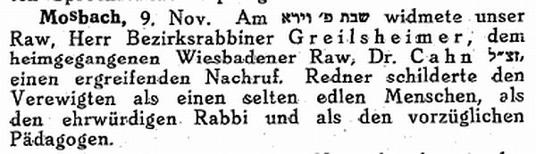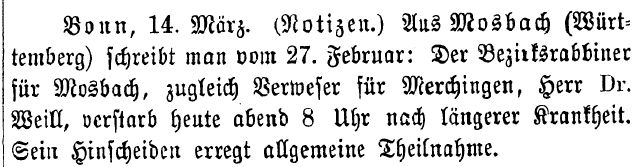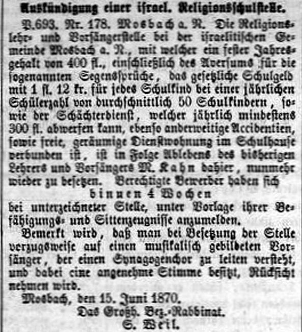 Bezirksrabbiner von Mosbach und letzterer Bezirk erhielt Herrn Kandidat