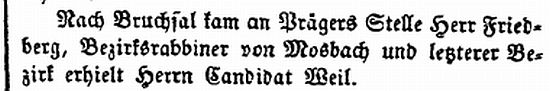 1855: "Nach Bruchsal kam an Prägers Stelle Herr Friedberg,