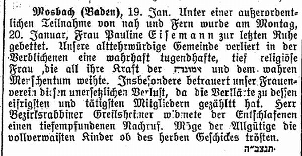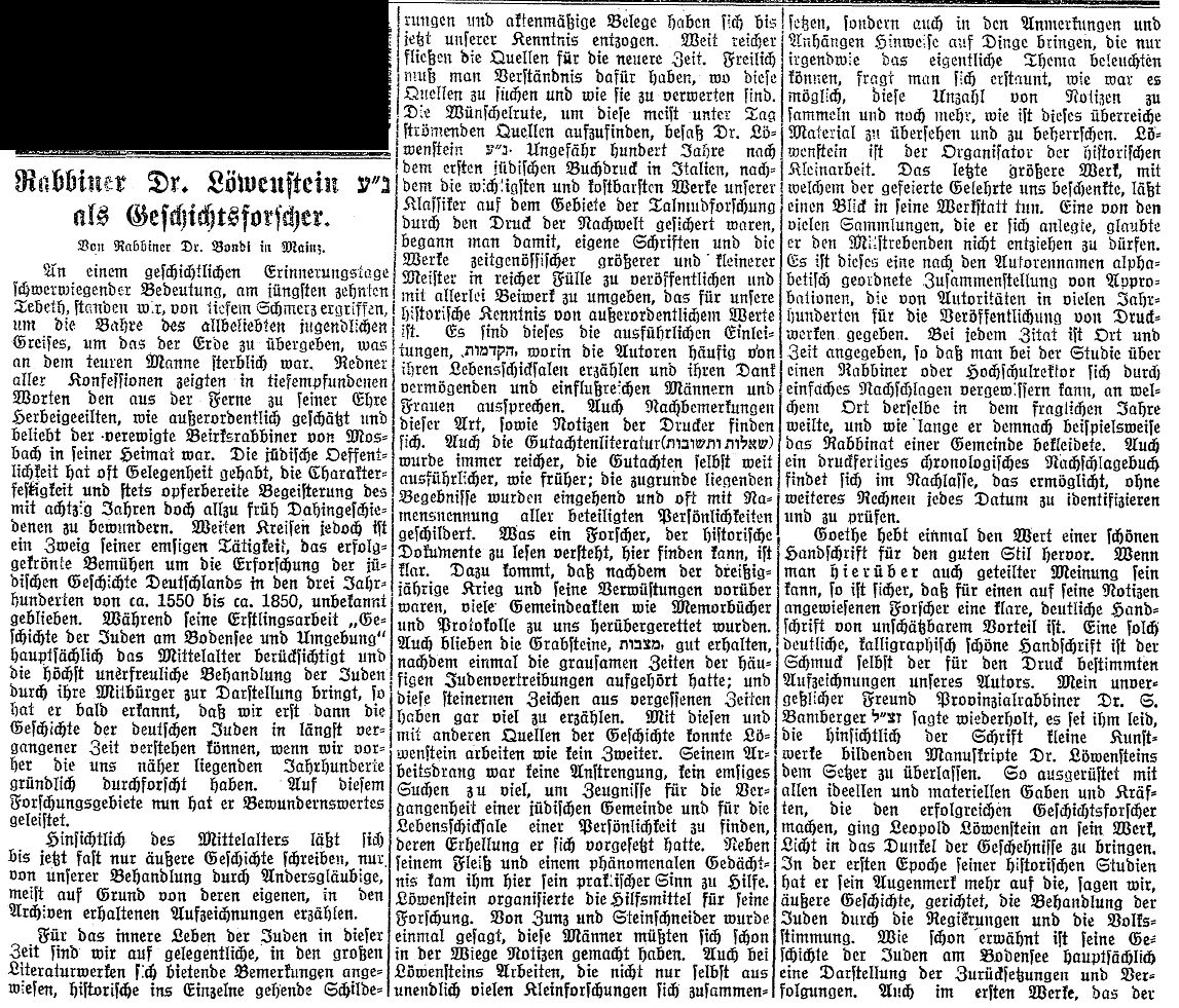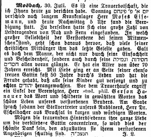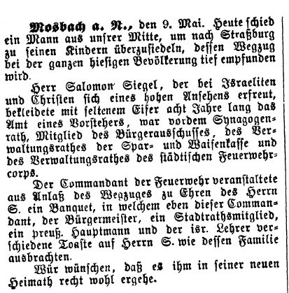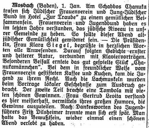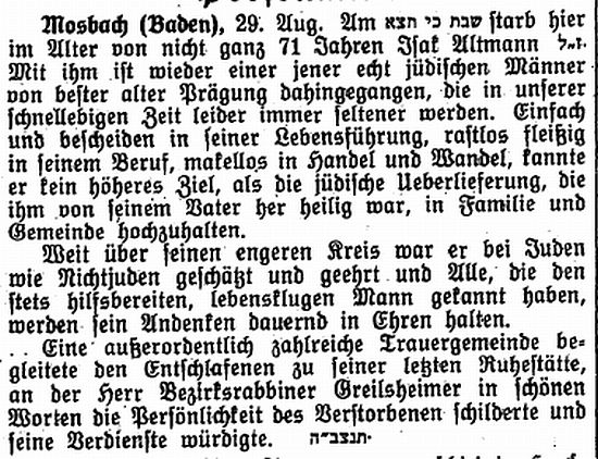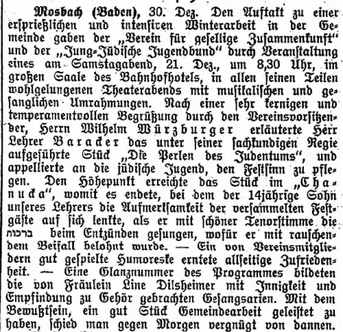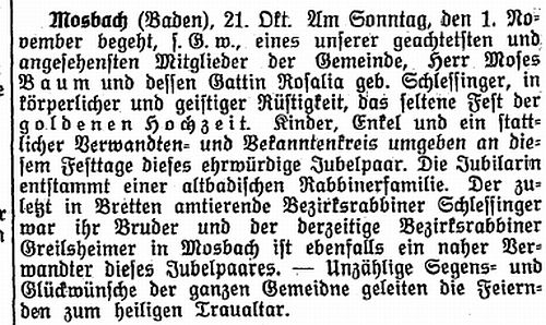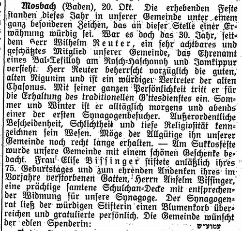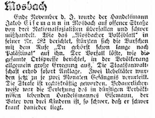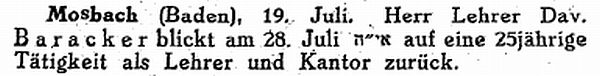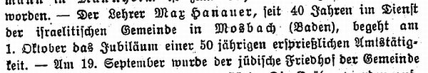 Beiträgen zur jüdischen Geschichte in Mosbach wurden in jüdischen Periodika