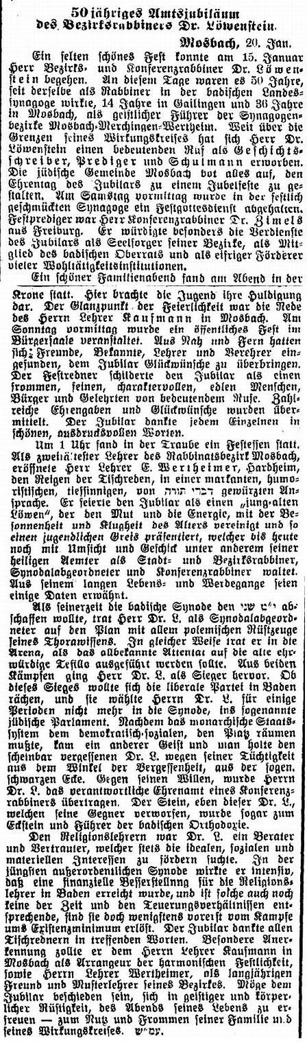 in der Zeitschrift "Der Israelit" vom 23. Januar