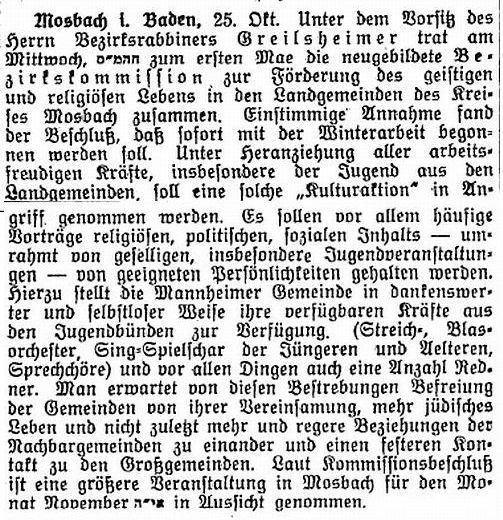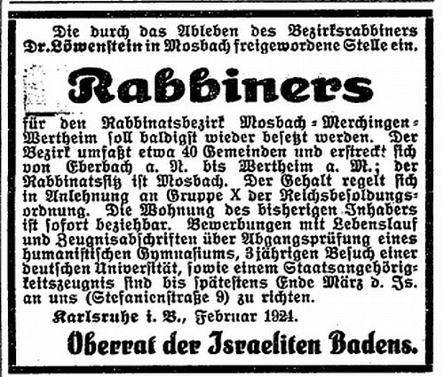 Oberrabbinen sind, zu geben), in Mosbach am Neckar, einer