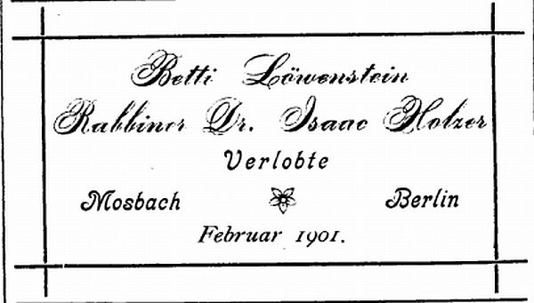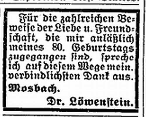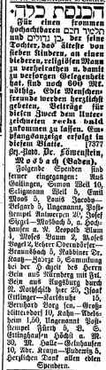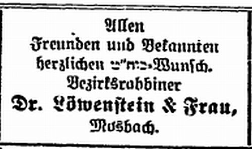 Seiner Ehrwürden Herrn Bezirksrabbiner Dr. Löwenstein empfehlen
