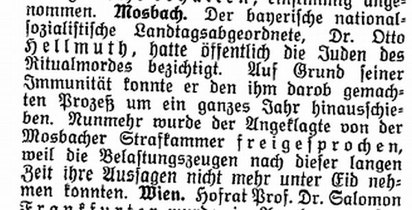 Landtagsabgeordnete, Dr. Otto Hellmuth, hatte öffentlich die Juden