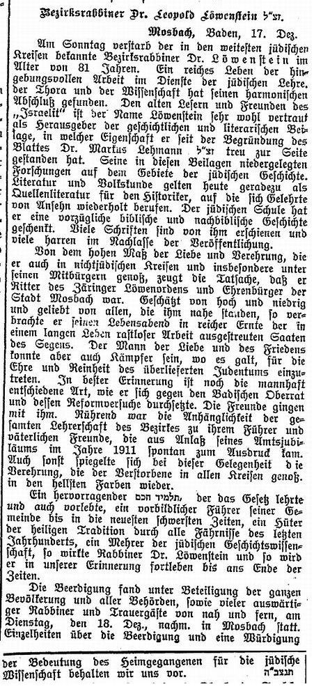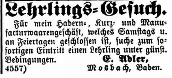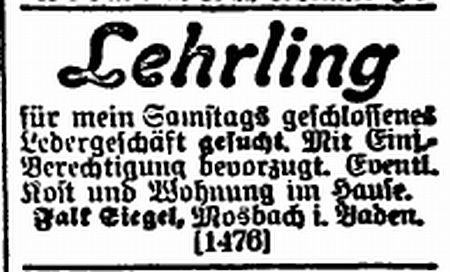 in der Zeitschrift "Der Israelit" vom 17. Februar 1904: "Lehrling