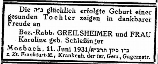 Greilsheimer und seiner Frau Karoline geb. Schleßinger (1931)