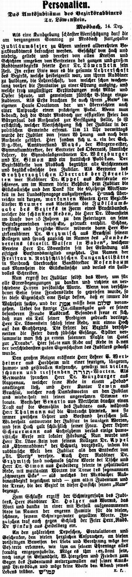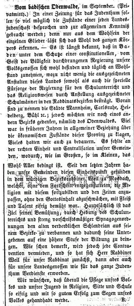 in der Zeitschrift "Der Israelit des 19. Jahrhunderts" vom 7.