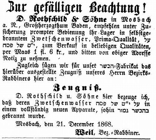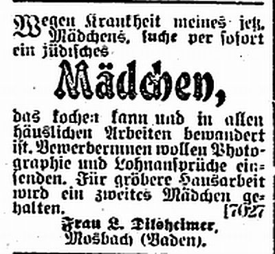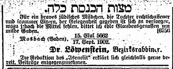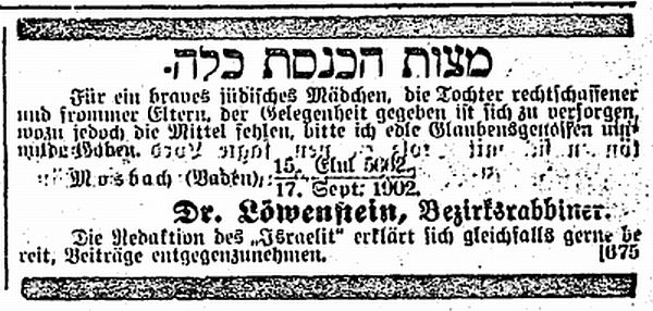 Anzeige in der Zeitschrift "Der Israelit" vom 17.