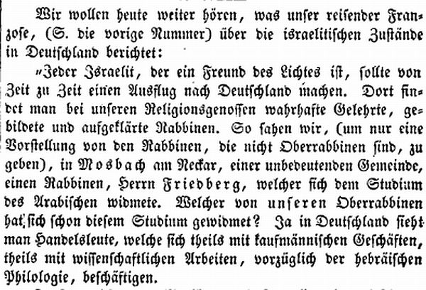 Franzose, (siehe die vorige Nummer) über die israelitischen Zustände in