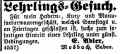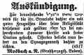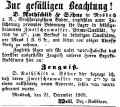 Anzeige im "Großherzoglich Badischen Anzeige-Blatt für den