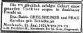 Geburtsanzeige einer Tochter von Bezirksrabbiner