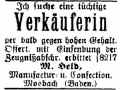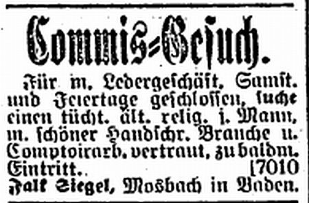 in der Zeitschrift "Der Israelit" vom 22. Dezember 1890: "Kommis-Gesuch.