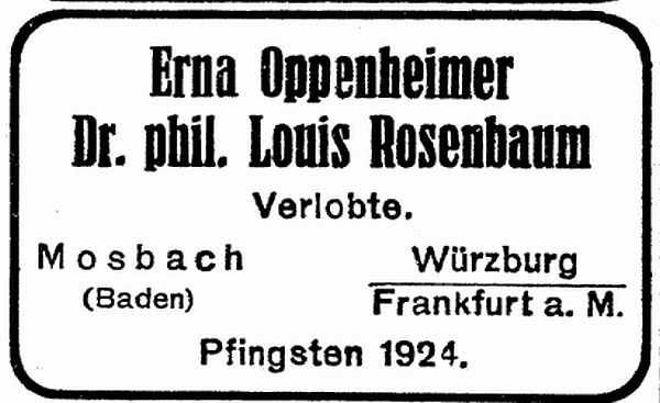 von Erna Oppenheimer und Dr. Louis Rosenbaum (1924)