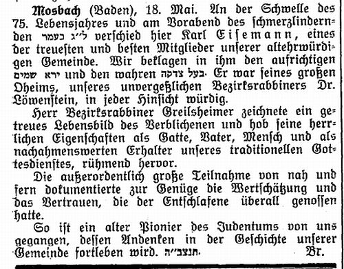 in der Zeitschrift "Der Israelit" vom 18. Juni
