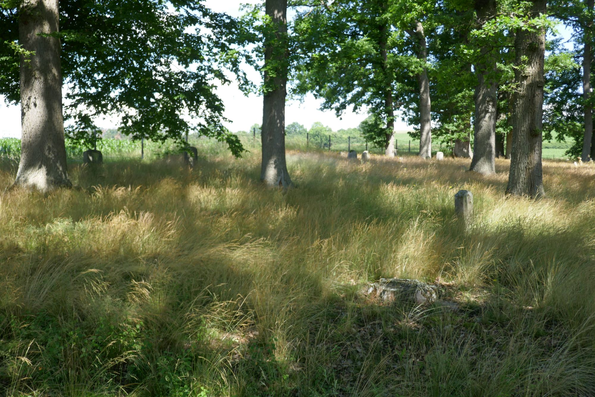 Der Friedhof liegt auf einer kleinen Anhöhe nordwestlich des Ortes, erreichbar