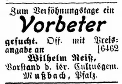 Ausschreibungen einer Vorbeterstelle zum Versöhnungstag