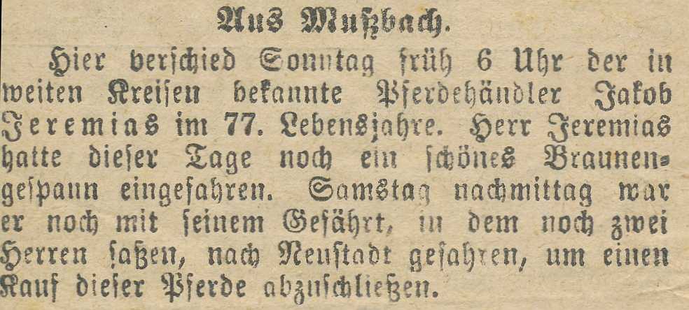 Landesrabbiners von Mähren, Gerschon Aschkenazi. Sein Sohn Isak Teutsch und dessen Sohn Jakob Isak wohnten in Mussbach. Jakob Teutsch ist