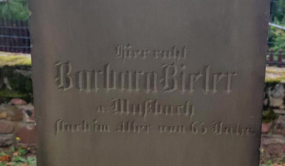 Mussbach. Sie starb / am Freitag, 17. Cheschwan / (5)648. Ihre Seele sei