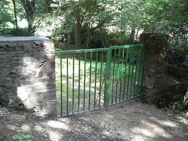 Hinter der Brücke biegt man rechts in einen Weg ein, der zum Friedhof führt.