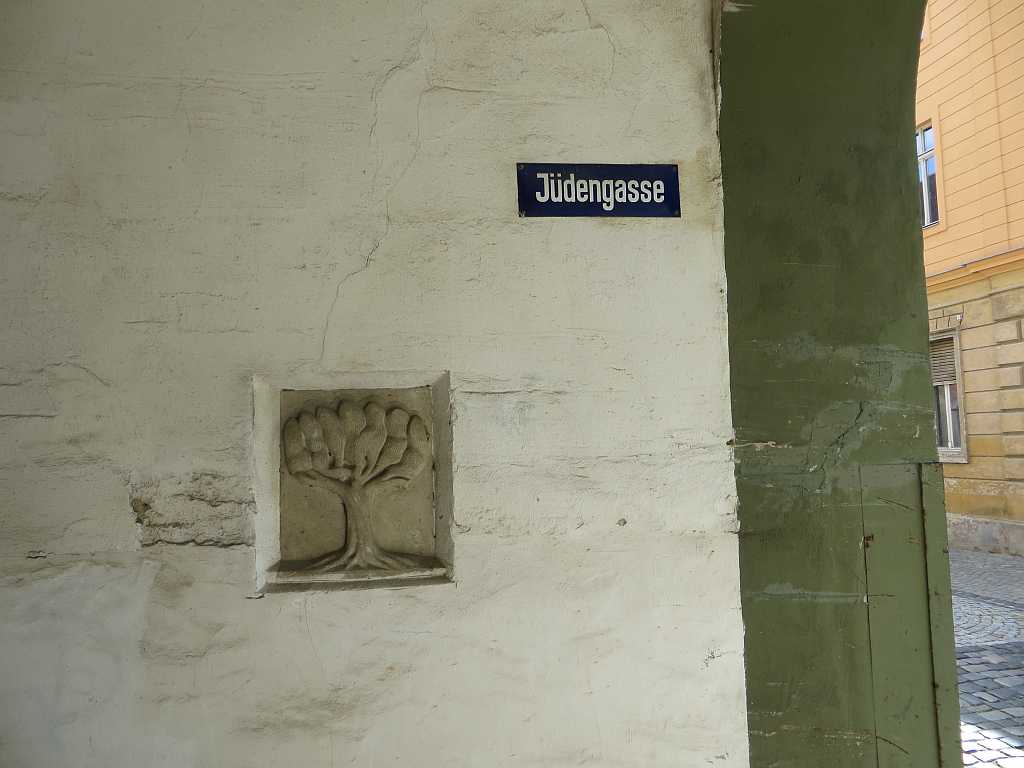 Topfmarkt zur "Jüdengasse". Darunter ist auch eine Tafel zur