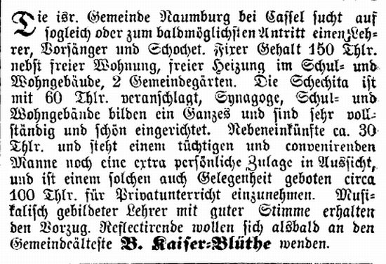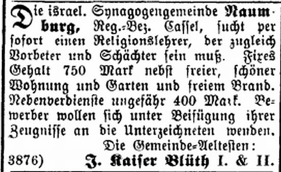 Zur jüdischen Gemeinde Naumburg gehörten auch