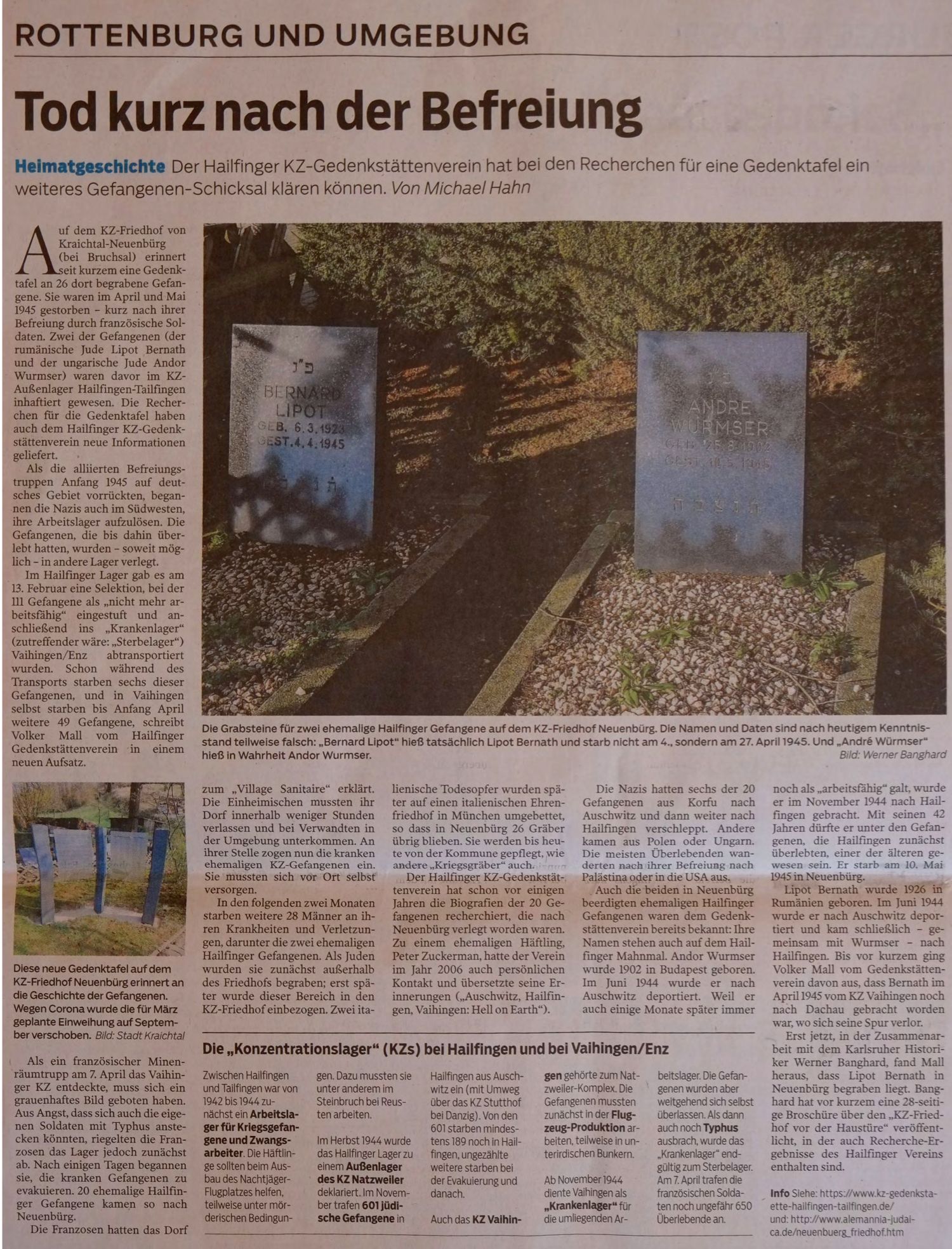 "Tod kurz nach der Befreiung. Heimatgeschichte. Der Hailfinger