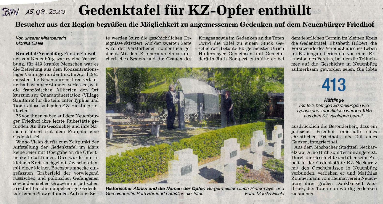 vom 15. September 2020: "Gedenktafel für KZ-Opfer enthüllt. Besucher