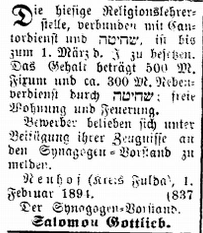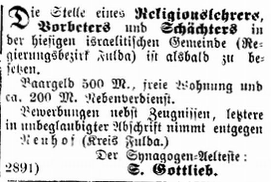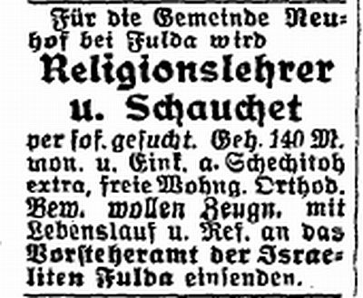 Gemeinde war zeitweise ein Religionslehrer am Ort, der auch als Vorbeter