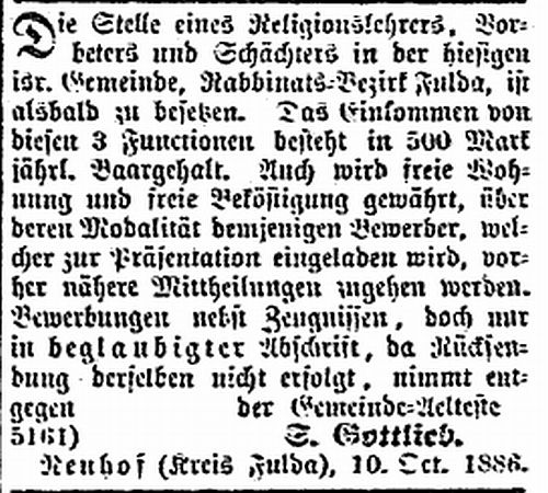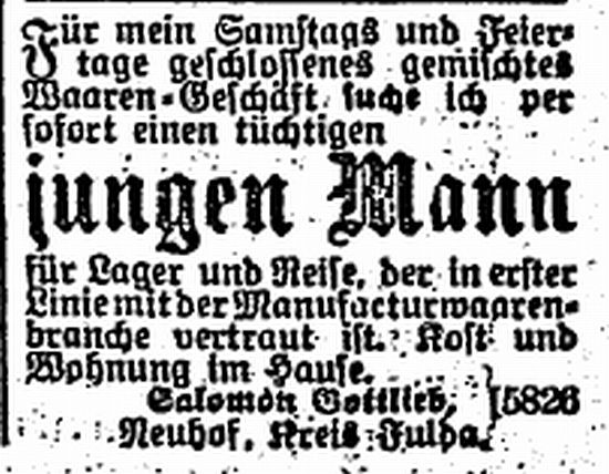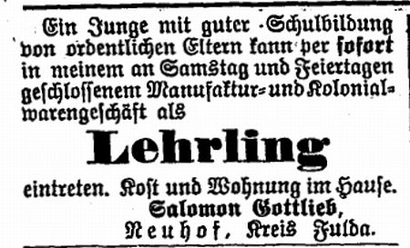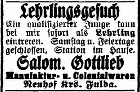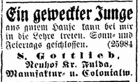 vgl. Anzeige unten). Die anderen Gottliebs waren alle Viehhändler und Metzger;