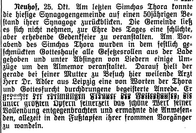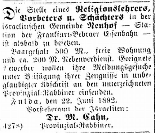 In Neuhof bestand eine jüdische Gemeinde bis 1939. Ihre Entstehung geht in
