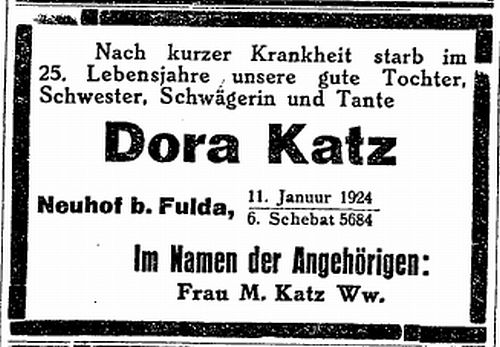 Von den in Neuhof geborenen und/oder längere Zeit am Ort wohnhaften jüdischen