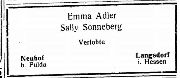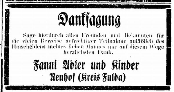 Adler (geb. 27.11.1893 in Neuhof, gef. 19.6.1918), Adolf Gottlieb (geb.