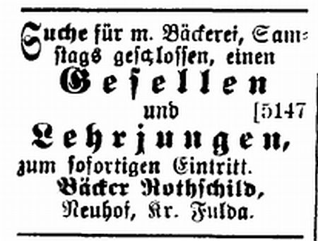 Metzgerei Meier Katz und eine Bäckerei Karl Rothschild. Zwei Familien