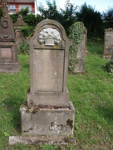 gestorben. Ihr Grabstein ist auf der Vorderseite in Hebräisch und auf der