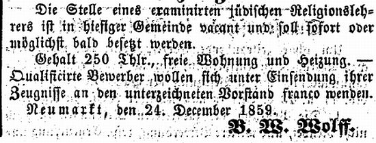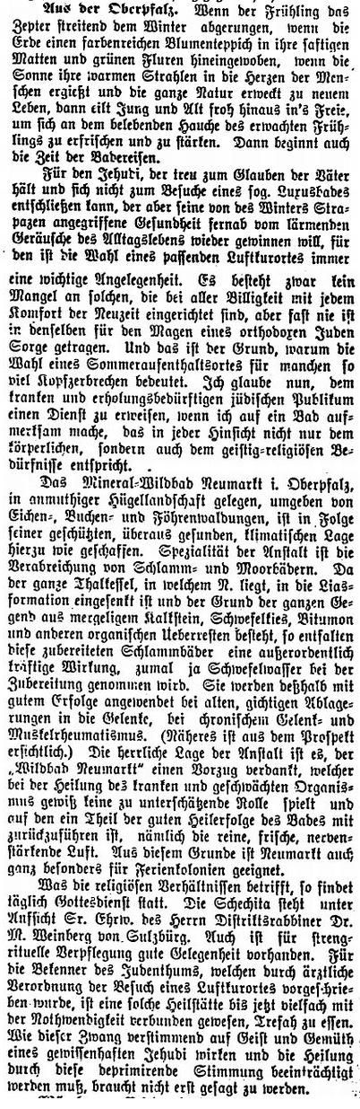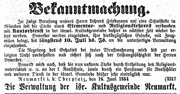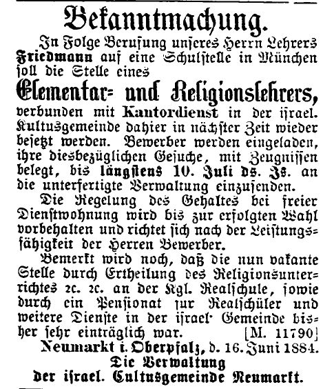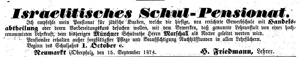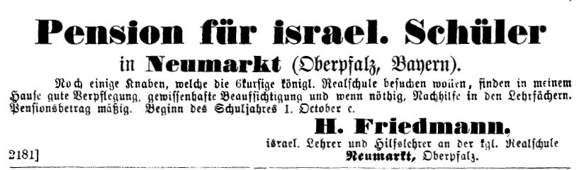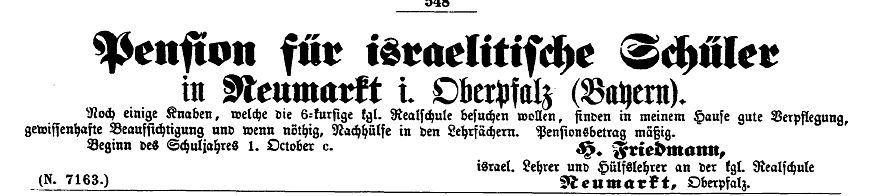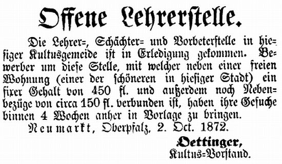 seinen Wohnsitz und damit den Sitz des Bezirksrabbinates nach Neumarkt