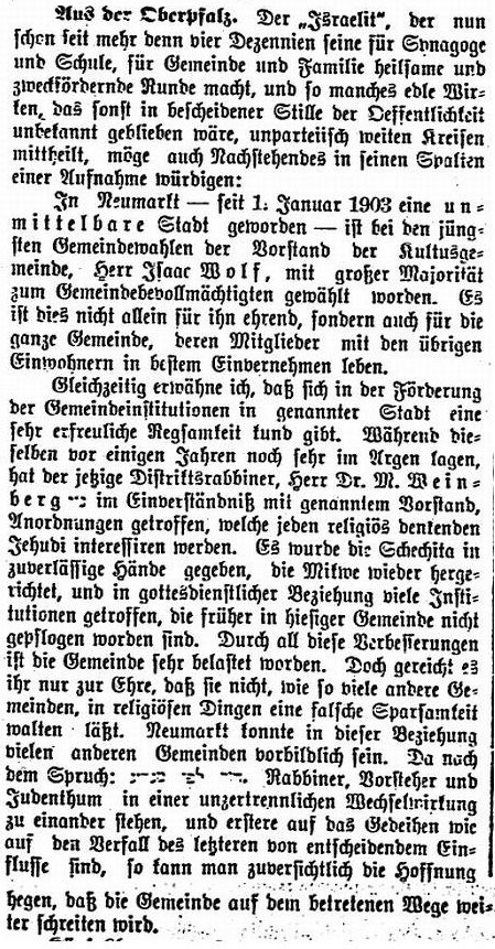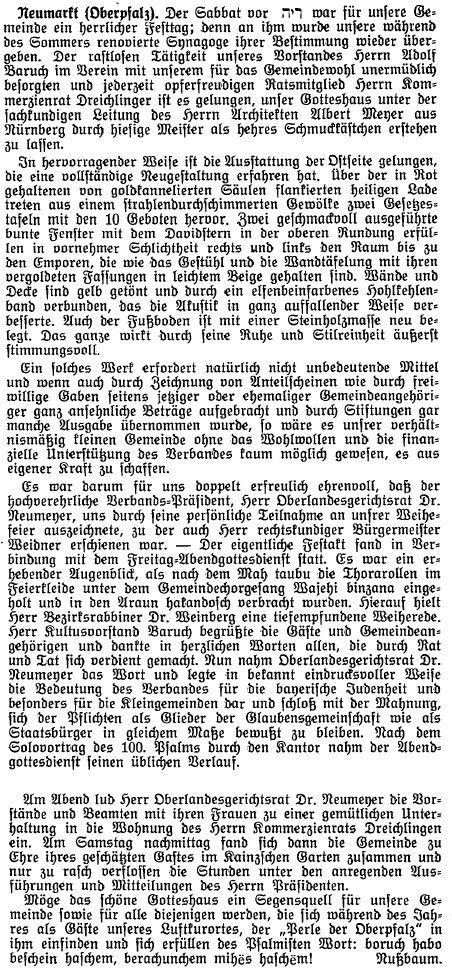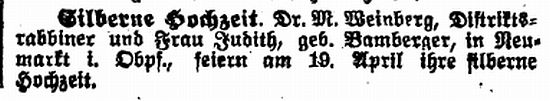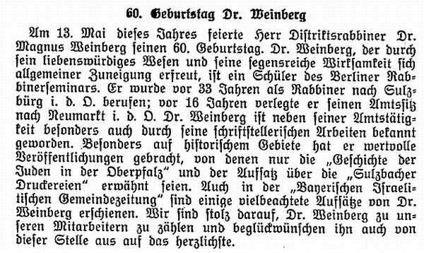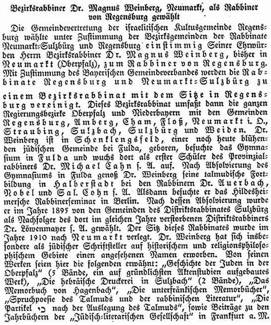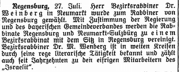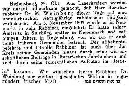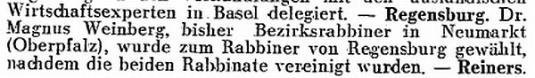 (1925 Dr. Magnus Weinberg), 1931 jedoch nach Regensburg, was der Anlass war, das