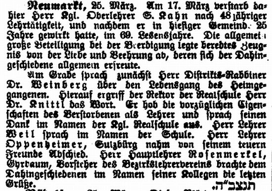 Kahn (1884 bis 1909, siehe Artikel unten), Jakob Oppenheimer (von Sulzbürg