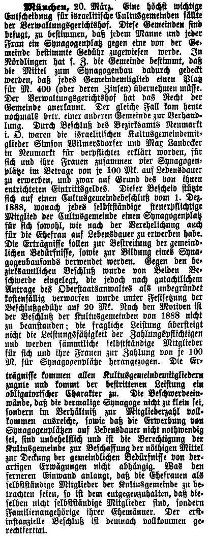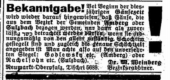 Artikel unten). 1911 verlegte der Sulzbürger Rabbiner (Distriktsrabbinat Sulzbürg)