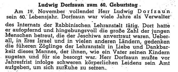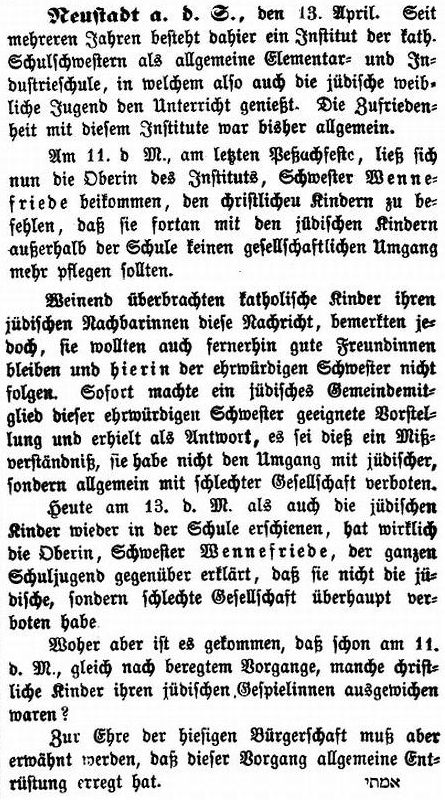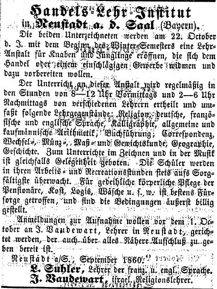 israelitische Handelsschule mit Mädchenpensionat eingerichtet (siehe Bericht