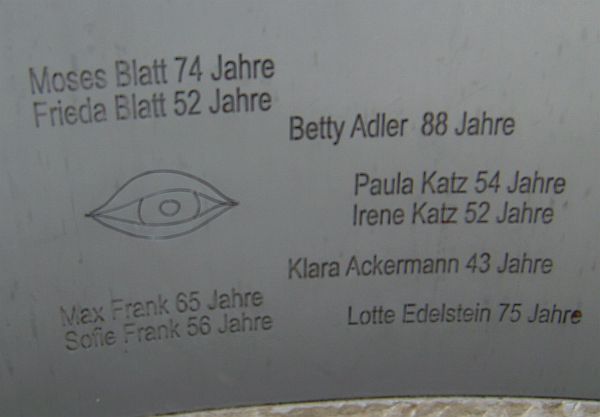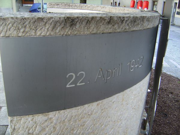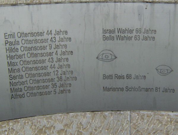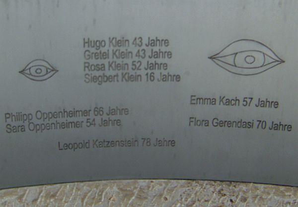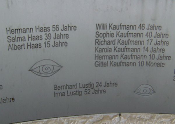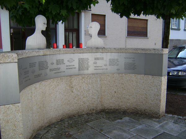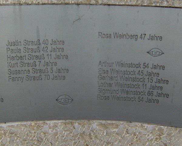 Einen wesentlichen Anteil an der Realisierung der Gedenkstätte habe vor allem Gitta Biedermann, würdigte Altrichter das unermüdliche Bemühen der Stadträtin. Zur Umsetzung und Gestaltung gab Bildhauerin Eva-Maria Warmuth einige Erläuterungen. Ihr sei es um die Wahrnehmung der Vergangenheit gegangen, aber auch um die Zukunft. Daher habe sie den beiden Figuren Augen gegeben, als Ausdruck für Offenheit gegenüber dem anderen und dem allgemeinen Geschehen. Das Halbrund, in dem die Namen der Deportierten mit der Angabe ihres Alters zu lesen sind, verstehe sie wie eine Umarmung.