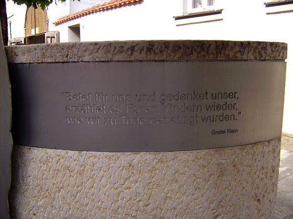 Aber Gretel Klein war nicht nur eins der Opfer, sie hinterließ die zentrale Botschaft des Mahnmals. In einem Brief hatte sie an ihre Kinder geschrieben: "Betet für uns und gedenket unser, erzählet es Euren Kindern wieder, wie wir zu Tode gepeinigt wurden." Hanna und Walter erteilten der Künstlerin Eva-Maria Warmuth die Erlaubnis, diesen ergreifenden Satz in das Mahnmal einzuarbeiten und ermöglichten ihr dadurch wohl auch den engen emotionalen Bezug, den Bürgermeister Bruno Altrichter in seiner Ansprache ausdrücklich hervorhob.