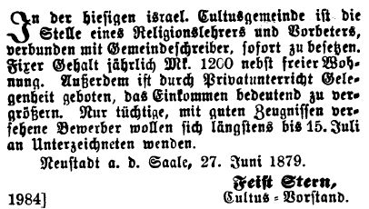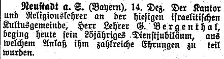 Bergenthal (oder war dieser schon seit 1879 in Neustadt?), der 1904 sein 25-jähriges