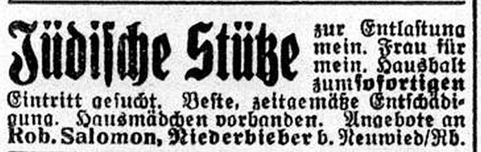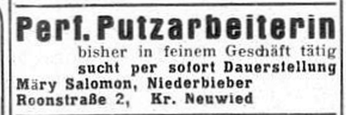 Anzeige von Mary Salomon aus Niederbieber (1923)