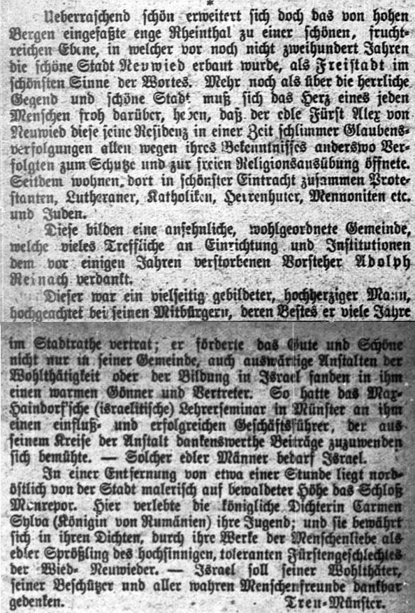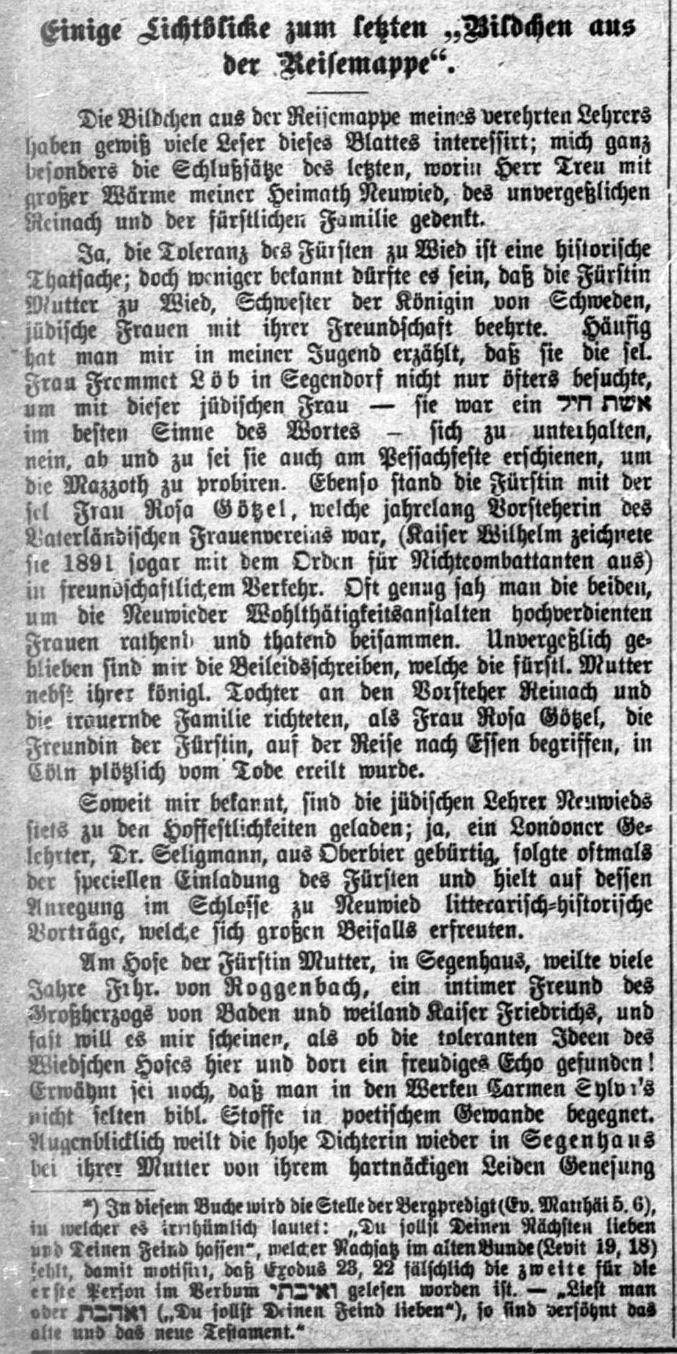 im "Jüdischen Familienblatt" Nr. 45 1892 - Auszug aus einem Beitrag