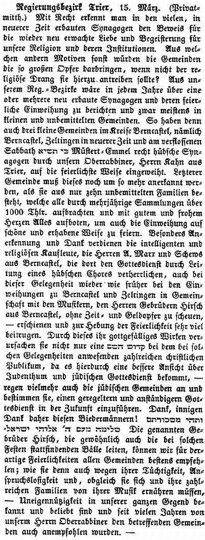 Ein solches Gesuch der Israeliten in Neumagen ist nunmehr, wie wir