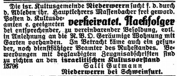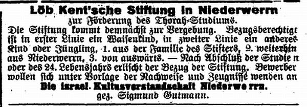 gehörenden Niederwerrn bestand eine jüdische Gemeinde bis 1942. Ihre Entstehung
