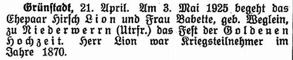 Weiler (Schmuser), Löw Mayer Grünbaum (Hausierhandel), Lippmann Samuel Elson