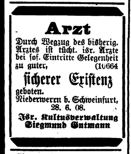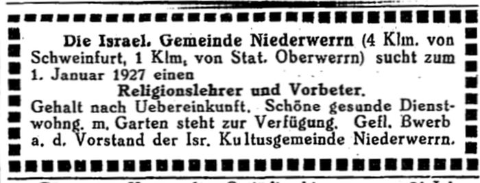 Niederwerrn wurde 1840 Sitz eines Distriktsrabbinates. Rabbiner Mayer