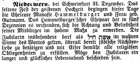 1817 und 1831 wird er als Rabbiner bei Trauungen in Niederwerrn genannt, nahm