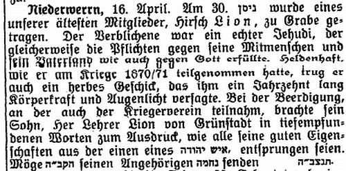 genannt, auf dem auch die in Niederwerrn verstorbenen Juden beigesetzt wurden.